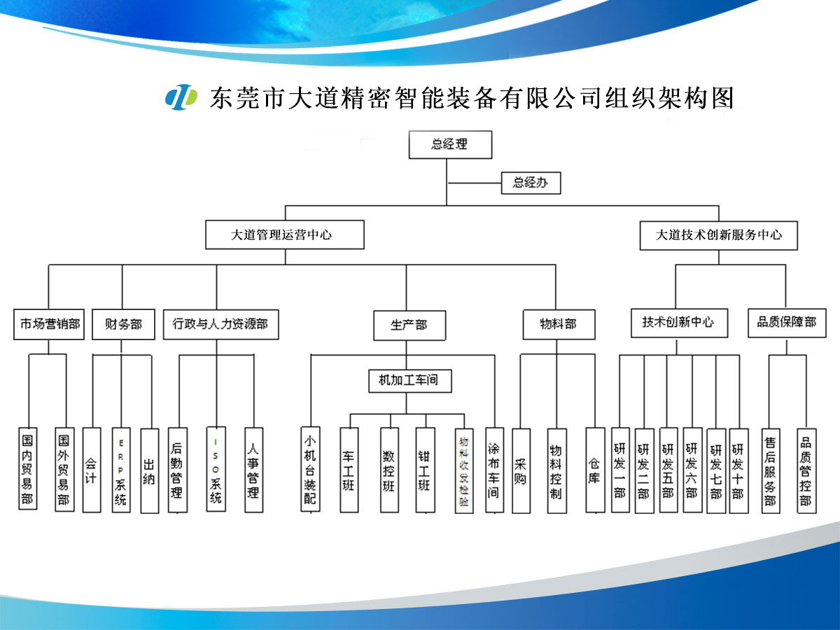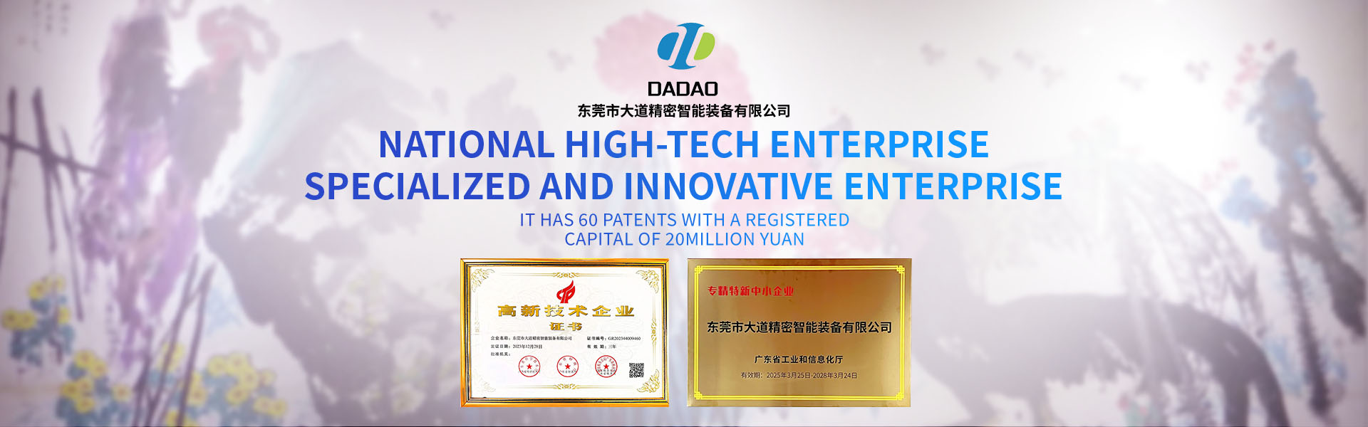 大道精密成立于2019年,公司注冊資本1000萬元,擁有辦公室、廠房等18,000多平方米。已通過ISO9001:2015國際質(zhì)量管理體系認(rèn)證,擁有國家各類專利共計58項,獲得“中國大道.商標(biāo)”和“一帶一路十周年 .國禮品牌”等榮譽(yù)稱號,屬于國家高新技術(shù)企業(yè),專精特新中小企業(yè)。2023年4月成立了“東莞市大道精密智能裝備有限公司關(guān)心下一代工作委員會”,是東莞市企石鎮(zhèn)工商聯(lián)副會長單位、東莞市企石鎮(zhèn)文學(xué)藝術(shù)界聯(lián)合會副主席單位、東莞市環(huán)保包裝行業(yè)協(xié)會副會長單位、東莞市數(shù)控裝備行業(yè)協(xié)會第二屆會長單位、廣東省包裝技術(shù)協(xié)會常務(wù)理事單位、廣東省膠粘劑行業(yè)協(xié)會理事單位、國家標(biāo)準(zhǔn)《機(jī)械安全中安全防護(hù)授權(quán)系統(tǒng)的基本要求》起草單位。